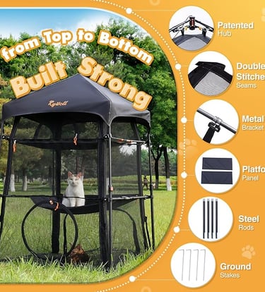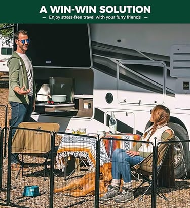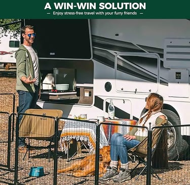 Keeping your pets safe outside is paramount. No matter what you have outdoors to contain your pets, DO NOT LEAVE THEM UNATTENDED! For dogs you can carry different portable fencing options. There are panels, For cats there are some awesome catios available so they can get some fresh air and still be around their humans. The fence and the catios have options of adding on to either one. The fence you can make larger or smaller depending on the site. The catio has options of adding large tubes and smaller cubes so the cats can run around. If you want to get fancy, you can add numerous tubes to cubes and then attach it back to the catio. make water available at all times of the year. Of course always ask the RV camping facility what they allow.